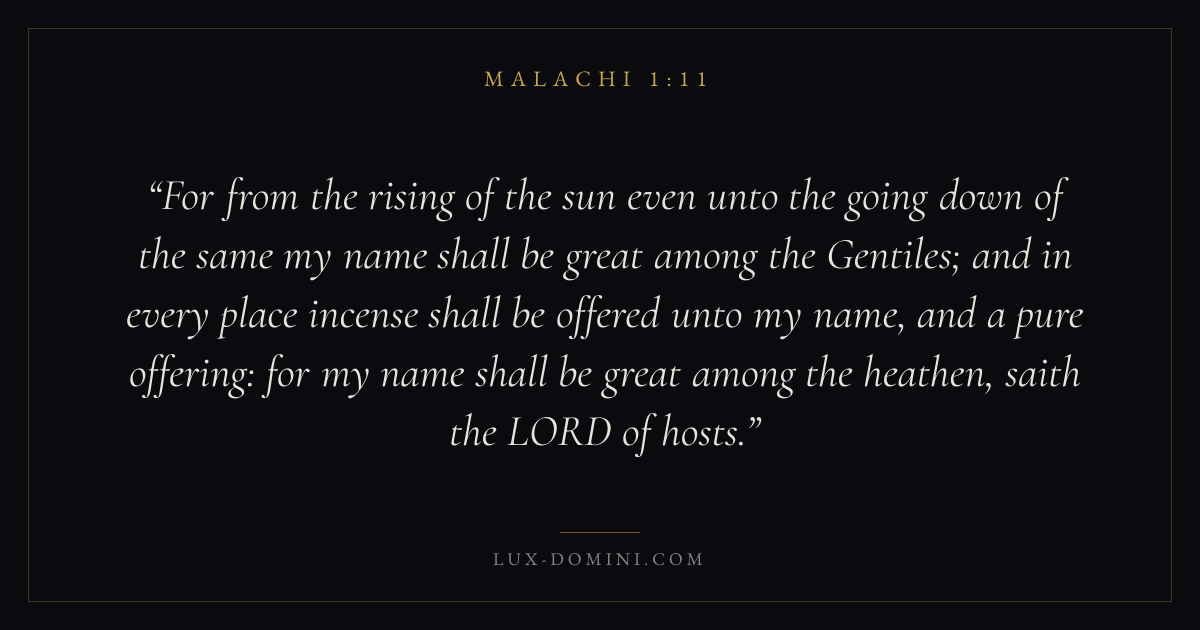 For from the rising of the sun even unto the going down of the same my name shall be great among the Gentiles; and in every place incense shall be offered unto my name, and a pure offering: for my name shall be great among the heathen, saith the LORD of hosts.