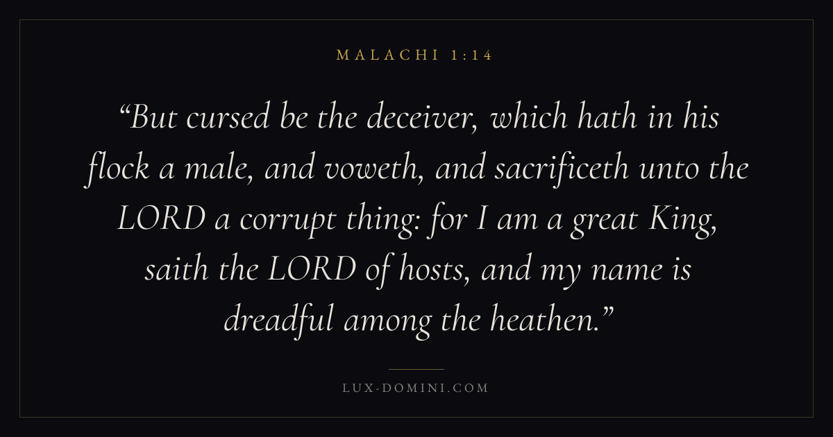 But cursed be the deceiver, which hath in his flock a male, and voweth, and sacrificeth unto the LORD a corrupt thing: for I am a great King, saith the LORD of hosts, and my name is dreadful among the heathen.