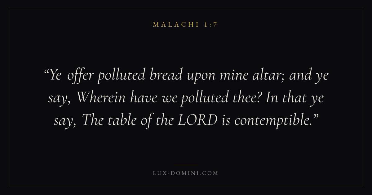 Ye offer polluted bread upon mine altar; and ye say, Wherein have we polluted thee? In that ye say, The table of the LORD is contemptible.