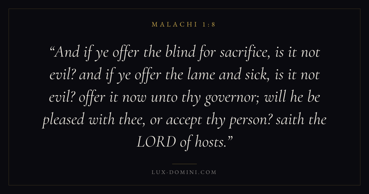 And if ye offer the blind for sacrifice, is it not evil? and if ye offer the lame and sick, is it not evil? offer it now unto thy governor; will he be pleased with thee, or accept thy person? saith the LORD of hosts.