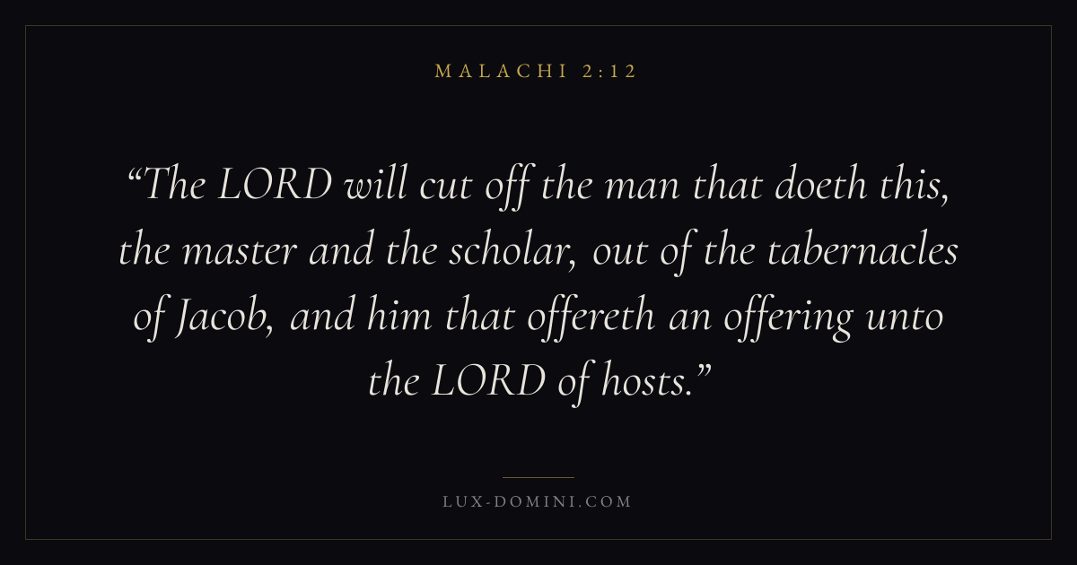 The LORD will cut off the man that doeth this, the master and the scholar, out of the tabernacles of Jacob, and him that offereth an offering unto the LORD of hosts.