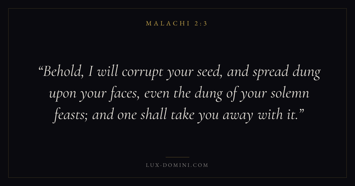 Behold, I will corrupt your seed, and spread dung upon your faces, even the dung of your solemn feasts; and one shall take you away with it.