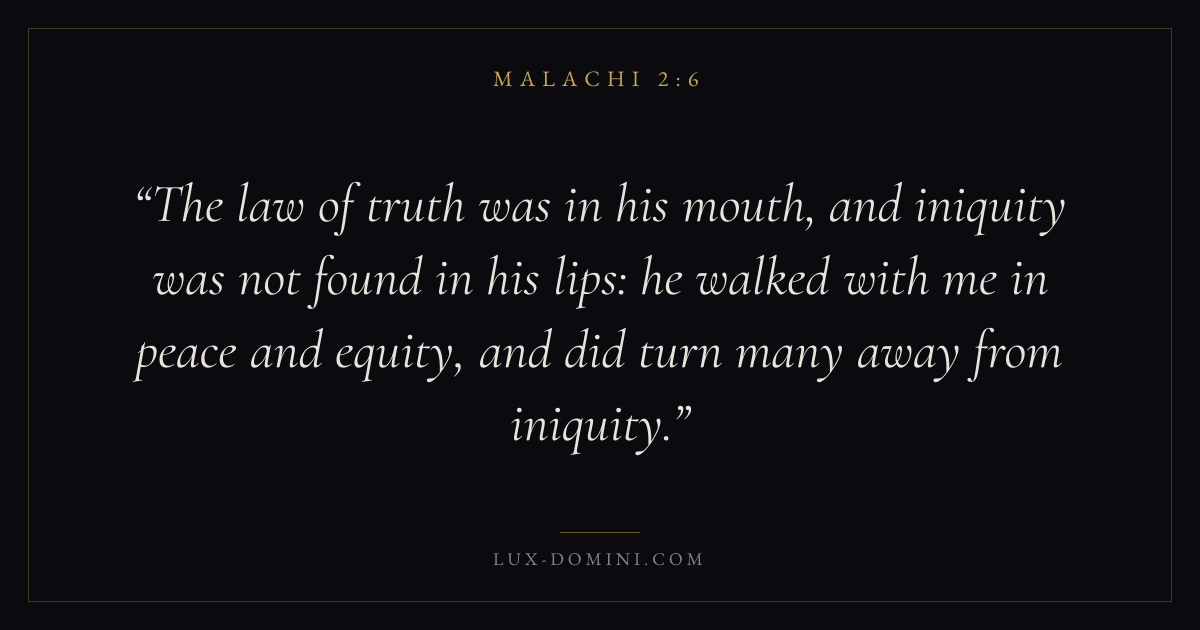 The law of truth was in his mouth, and iniquity was not found in his lips: he walked with me in peace and equity, and did turn many away from iniquity.