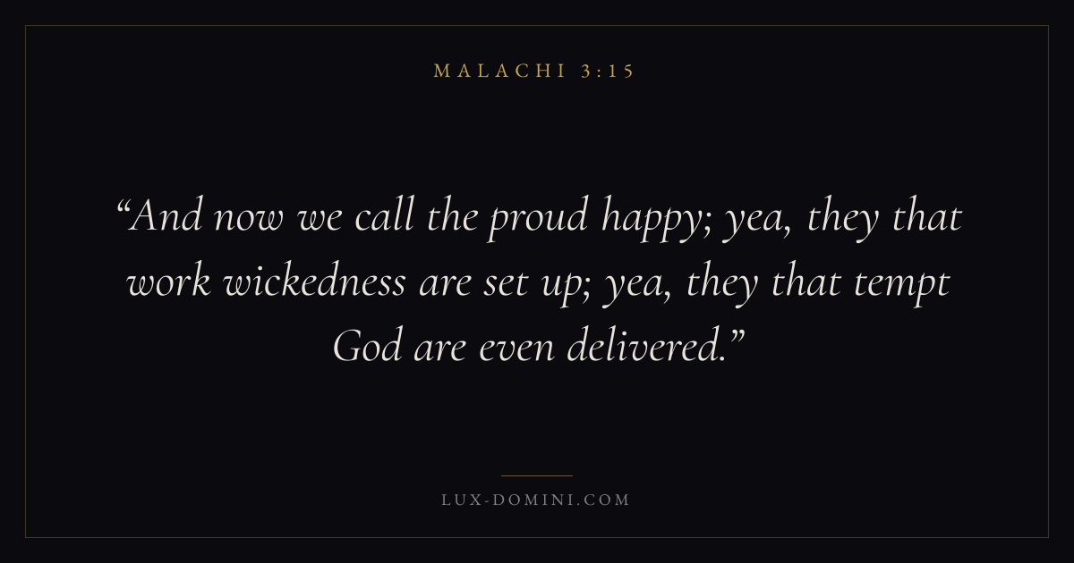 And now we call the proud happy; yea, they that work wickedness are set up; yea, they that tempt God are even delivered.