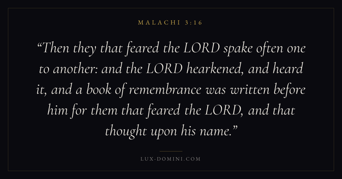Then they that feared the LORD spake often one to another: and the LORD hearkened, and heard it, and a book of remembrance was written before him for them that feared the LORD, and that thought upon his name.
