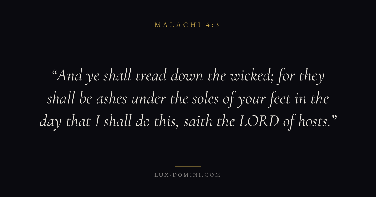 And ye shall tread down the wicked; for they shall be ashes under the soles of your feet in the day that I shall do this, saith the LORD of hosts.