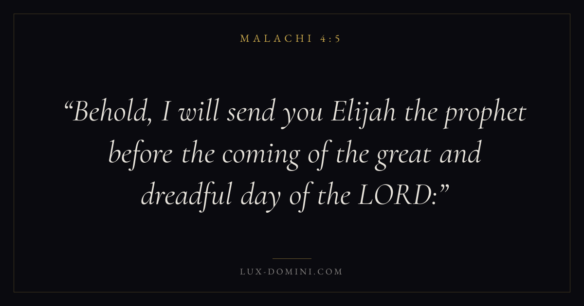 Behold, I will send you Elijah the prophet before the coming of the great and dreadful day of the LORD: