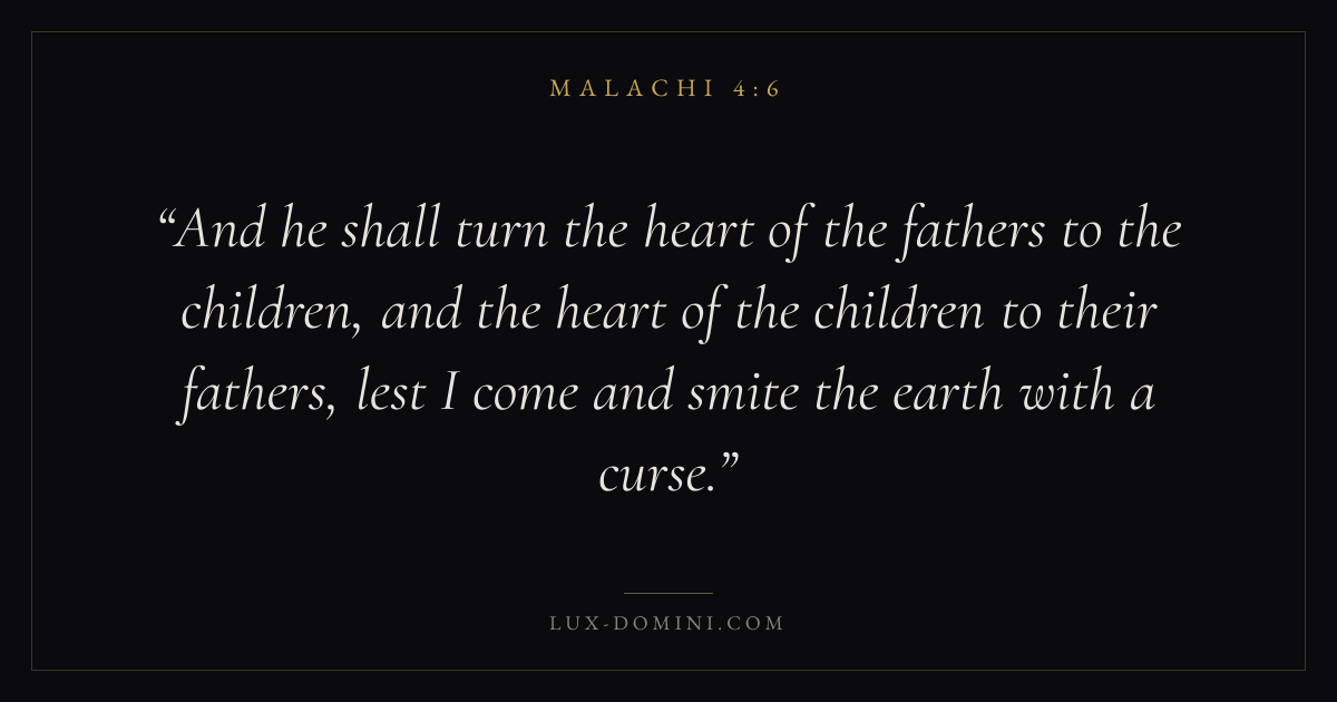 And he shall turn the heart of the fathers to the children, and the heart of the children to their fathers, lest I come and smite the earth with a curse.