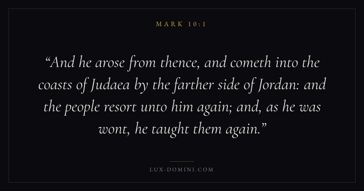 And he arose from thence, and cometh into the coasts of Judaea by the farther side of Jordan: and the people resort unto him again; and, as he was wont, he taught them again.