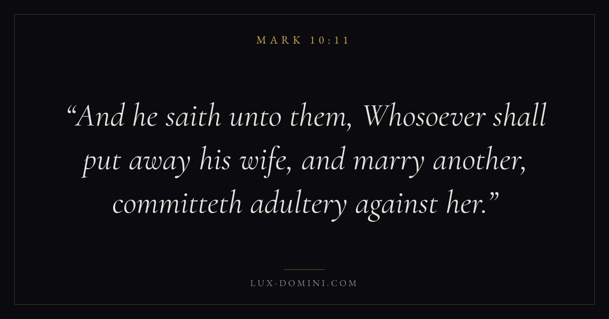 And he saith unto them, Whosoever shall put away his wife, and marry another, committeth adultery against her.