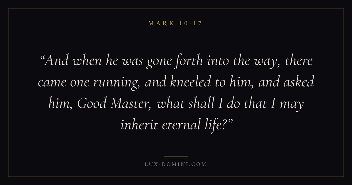 And when he was gone forth into the way, there came one running, and kneeled to him, and asked him, Good Master, what shall I do that I may inherit eternal life?