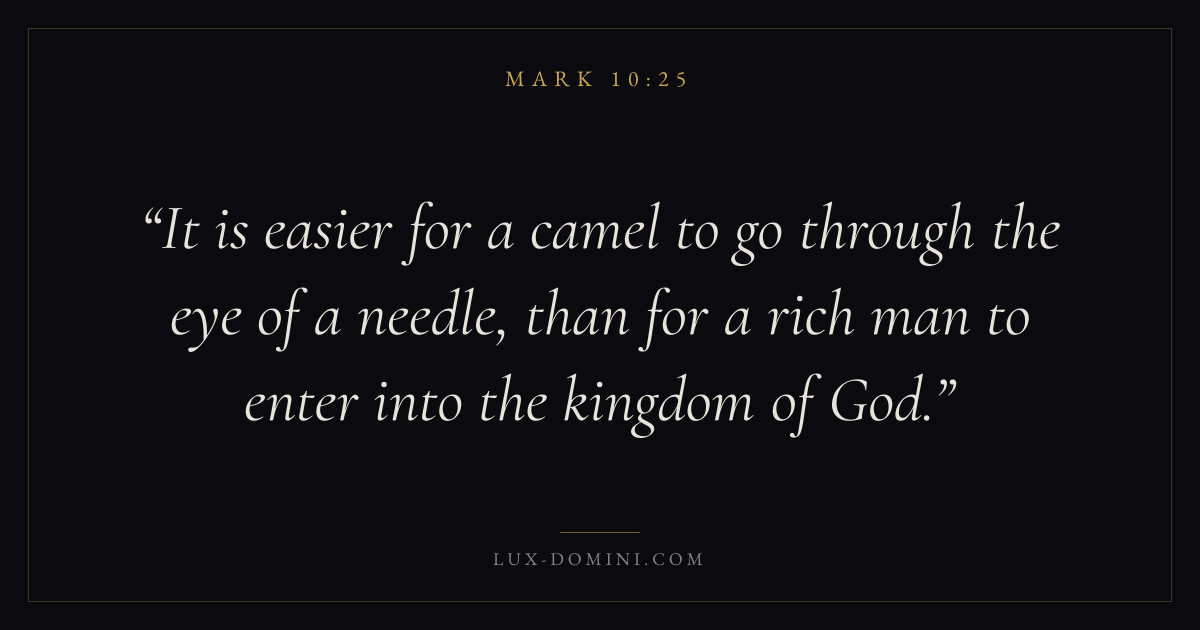 It is easier for a camel to go through the eye of a needle, than for a rich man to enter into the kingdom of God.