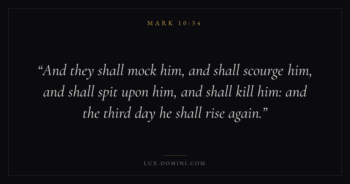 And they shall mock him, and shall scourge him, and shall spit upon him, and shall kill him: and the third day he shall rise again.