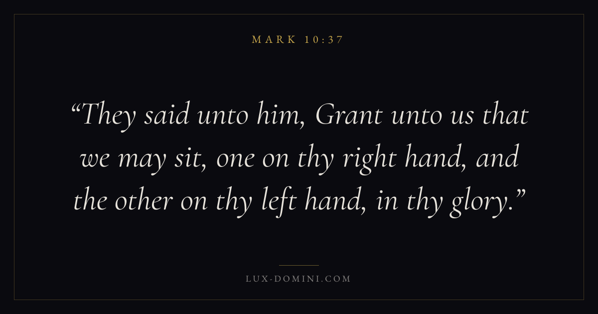 They said unto him, Grant unto us that we may sit, one on thy right hand, and the other on thy left hand, in thy glory.