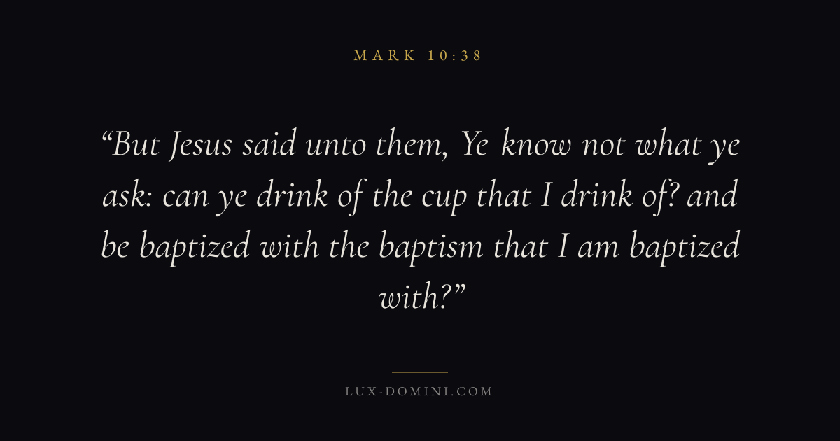 But Jesus said unto them, Ye know not what ye ask: can ye drink of the cup that I drink of? and be baptized with the baptism that I am baptized with?