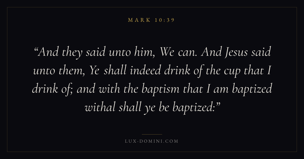 And they said unto him, We can. And Jesus said unto them, Ye shall indeed drink of the cup that I drink of; and with the baptism that I am baptized withal shall ye be baptized: