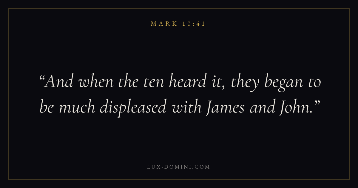 And when the ten heard it, they began to be much displeased with James and John.