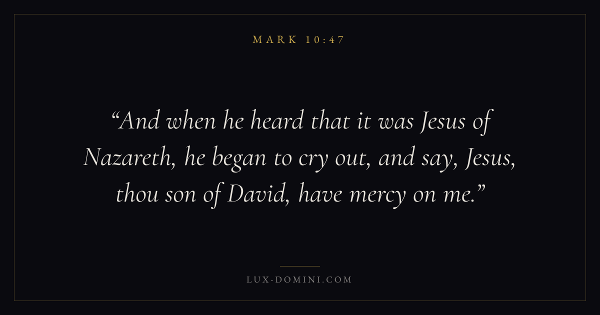 And when he heard that it was Jesus of Nazareth, he began to cry out, and say, Jesus, thou son of David, have mercy on me.