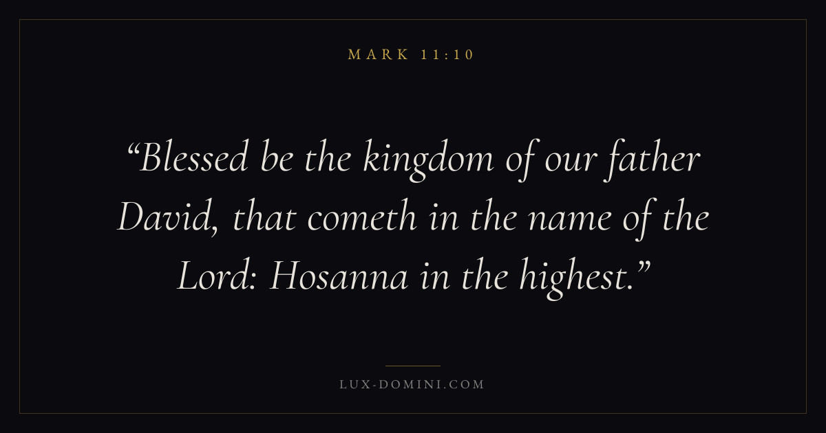 Blessed be the kingdom of our father David, that cometh in the name of the Lord: Hosanna in the highest.