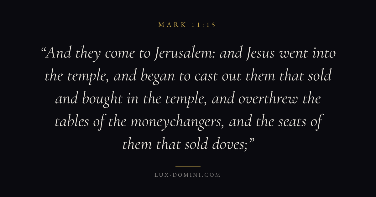 And they come to Jerusalem: and Jesus went into the temple, and began to cast out them that sold and bought in the temple, and overthrew the tables of the moneychangers, and the seats of them that sold doves;