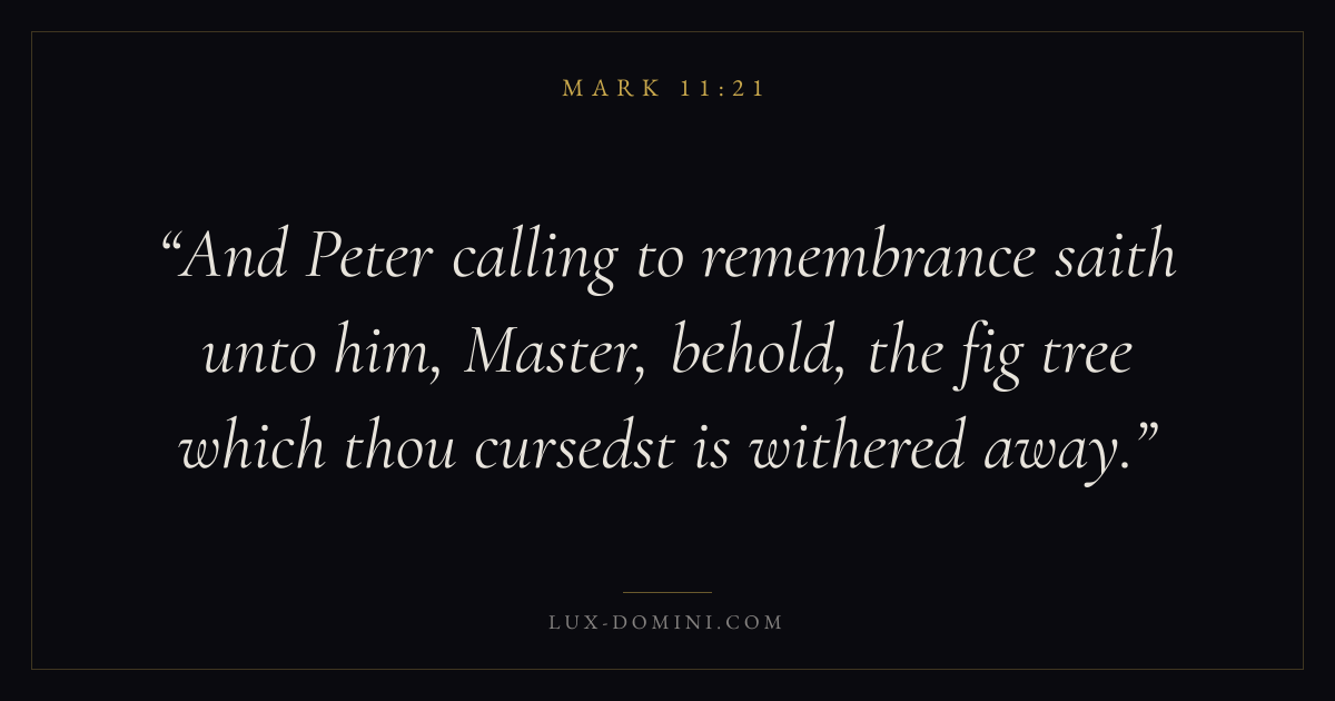 And Peter calling to remembrance saith unto him, Master, behold, the fig tree which thou cursedst is withered away.