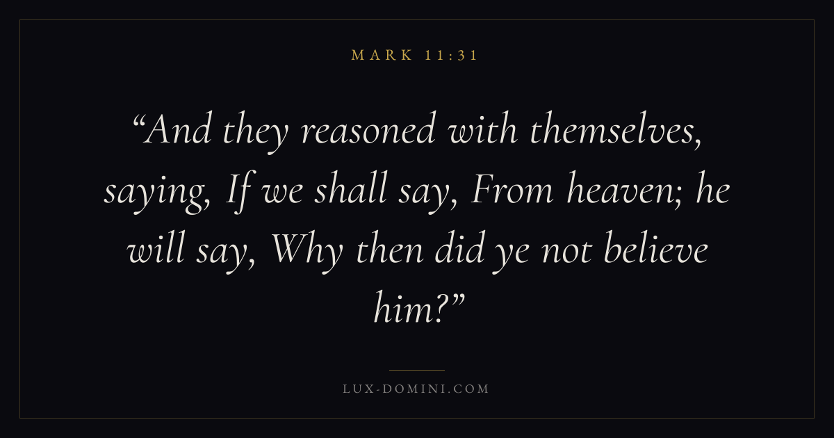 And they reasoned with themselves, saying, If we shall say, From heaven; he will say, Why then did ye not believe him?
