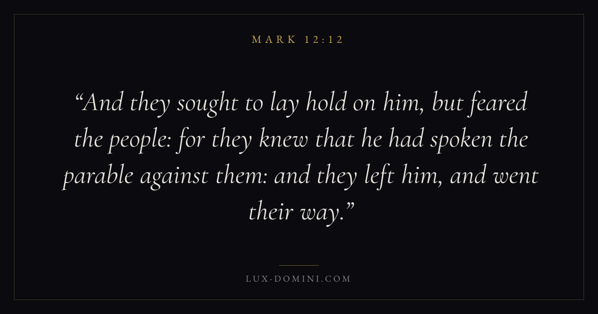 And they sought to lay hold on him, but feared the people: for they knew that he had spoken the parable against them: and they left him, and went their way.