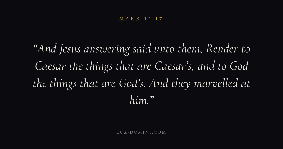 And Jesus answering said unto them, Render to Caesar the things that are Caesar’s, and to God the things that are God’s. And they marvelled at him.