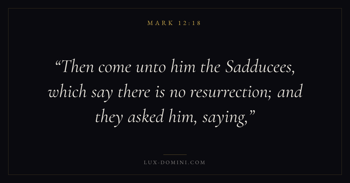 Then come unto him the Sadducees, which say there is no resurrection; and they asked him, saying,