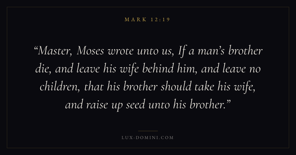 Master, Moses wrote unto us, If a man’s brother die, and leave his wife behind him, and leave no children, that his brother should take his wife, and raise up seed unto his brother.
