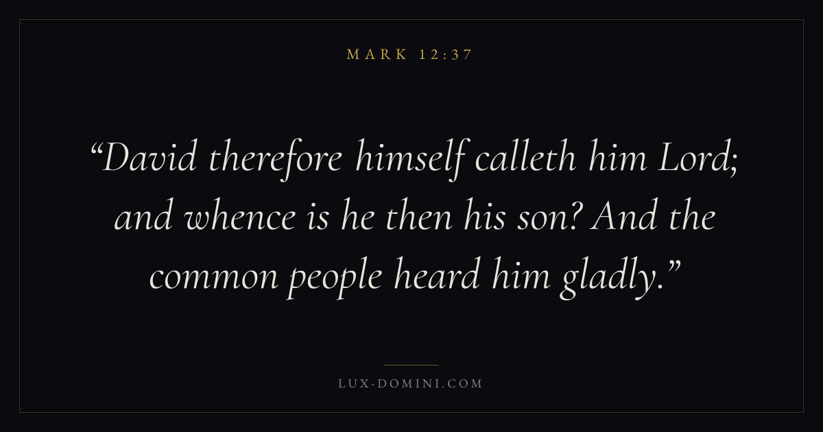 David therefore himself calleth him Lord; and whence is he then his son? And the common people heard him gladly.