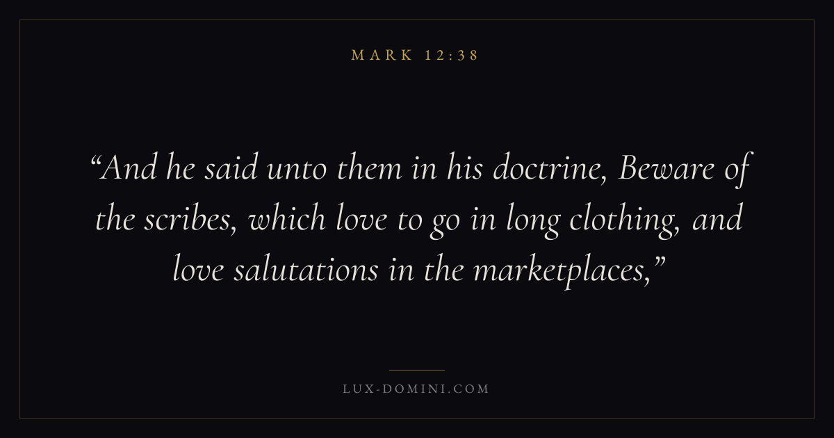 And he said unto them in his doctrine, Beware of the scribes, which love to go in long clothing, and love salutations in the marketplaces,