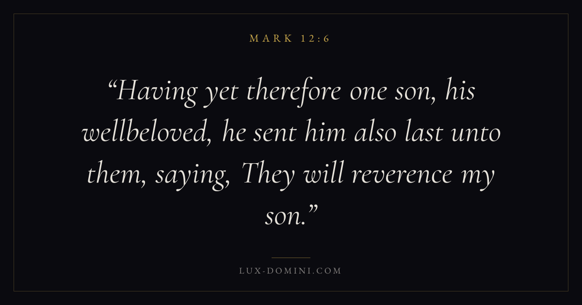 Having yet therefore one son, his wellbeloved, he sent him also last unto them, saying, They will reverence my son.