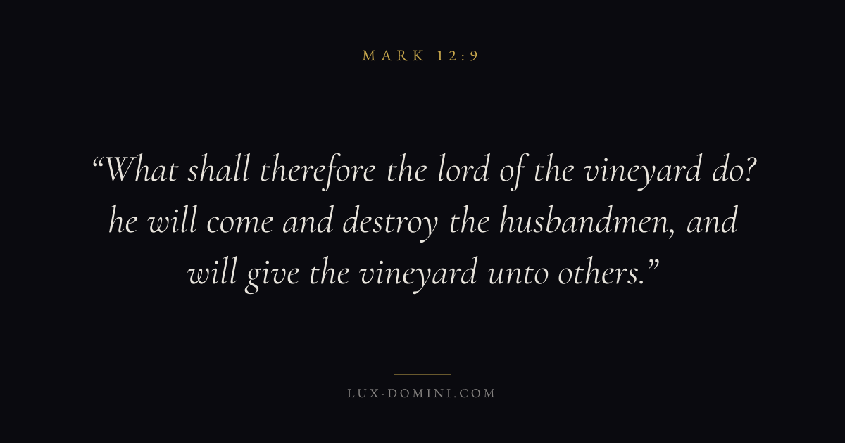 What shall therefore the lord of the vineyard do? he will come and destroy the husbandmen, and will give the vineyard unto others.