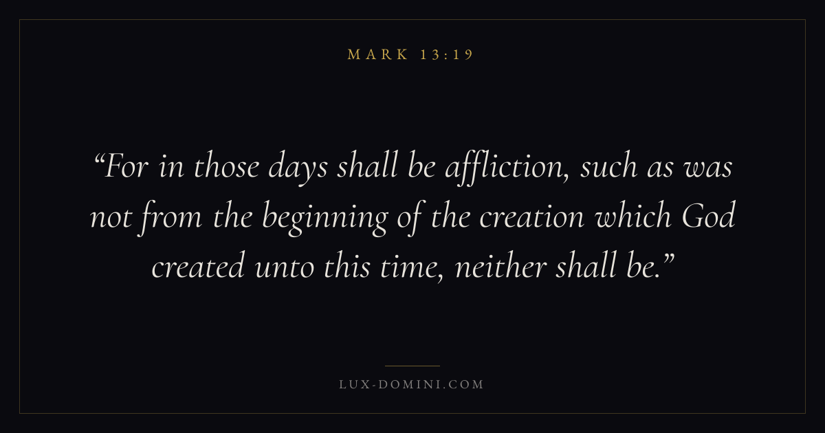For in those days shall be affliction, such as was not from the beginning of the creation which God created unto this time, neither shall be.