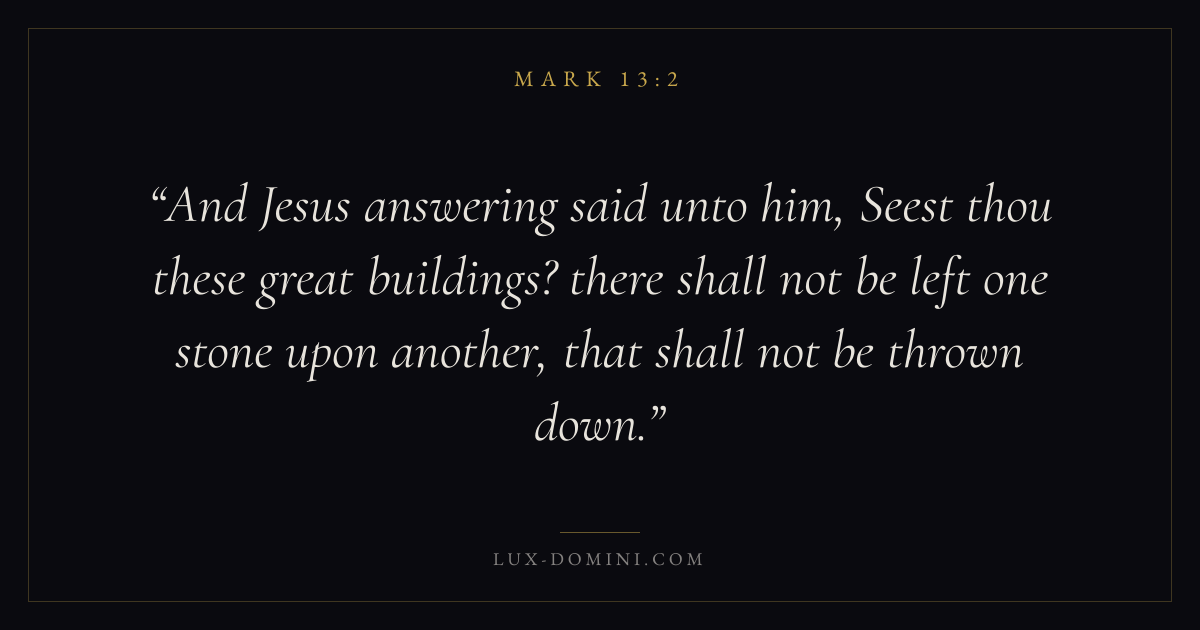 And Jesus answering said unto him, Seest thou these great buildings? there shall not be left one stone upon another, that shall not be thrown down.