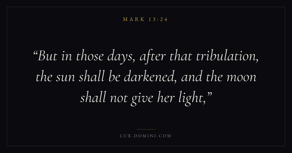 But in those days, after that tribulation, the sun shall be darkened, and the moon shall not give her light,