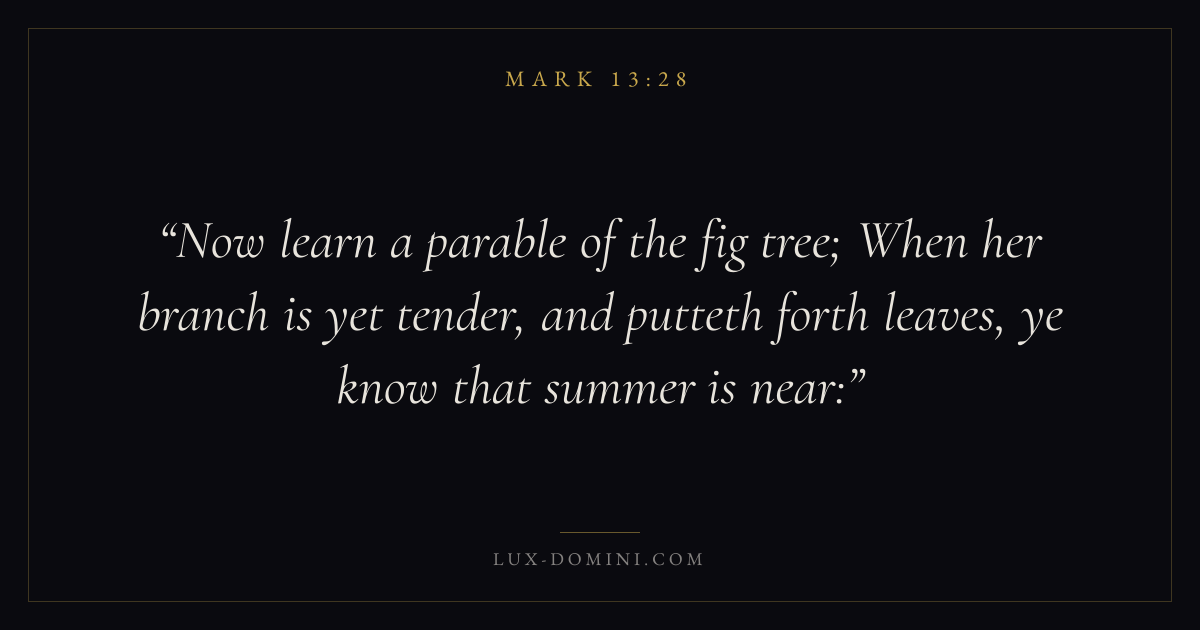 Now learn a parable of the fig tree; When her branch is yet tender, and putteth forth leaves, ye know that summer is near: