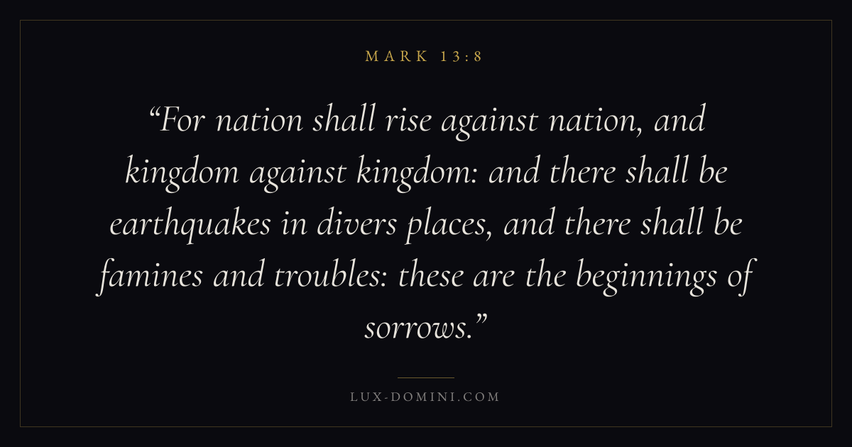 For nation shall rise against nation, and kingdom against kingdom: and there shall be earthquakes in divers places, and there shall be famines and troubles: these are the beginnings of sorrows.