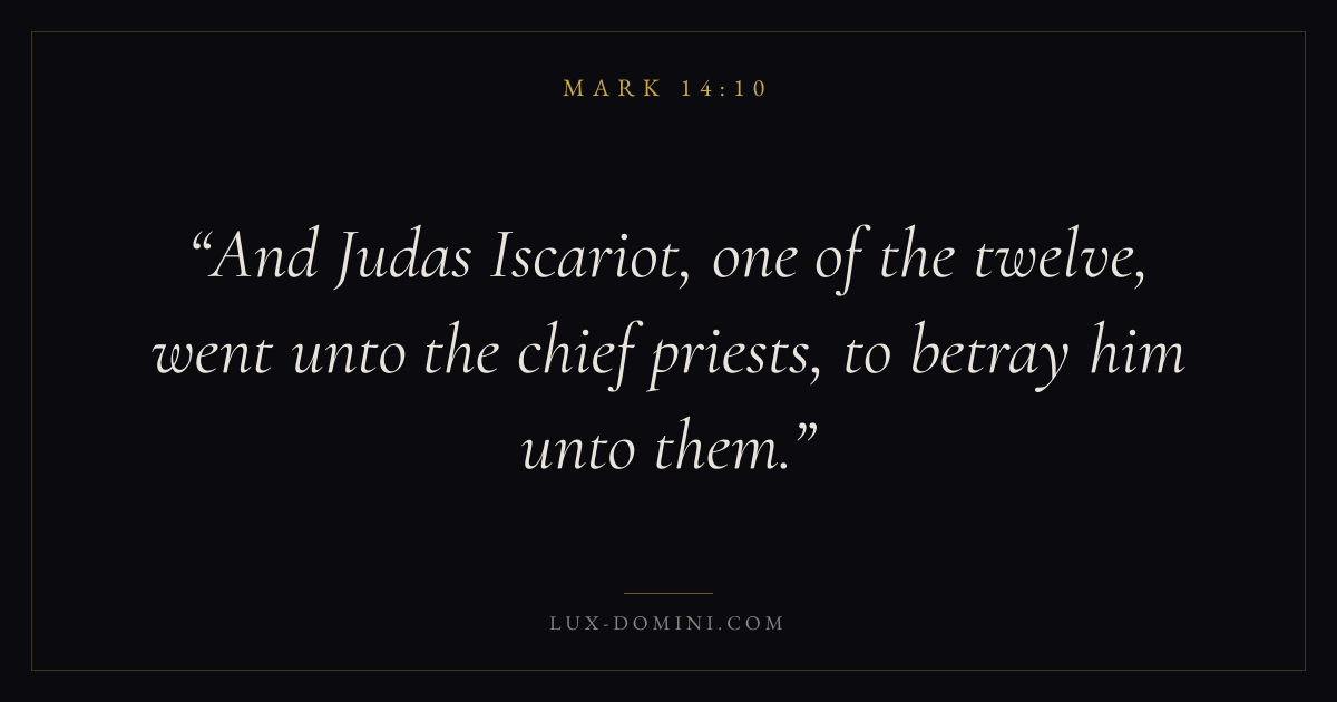 And Judas Iscariot, one of the twelve, went unto the chief priests, to betray him unto them.