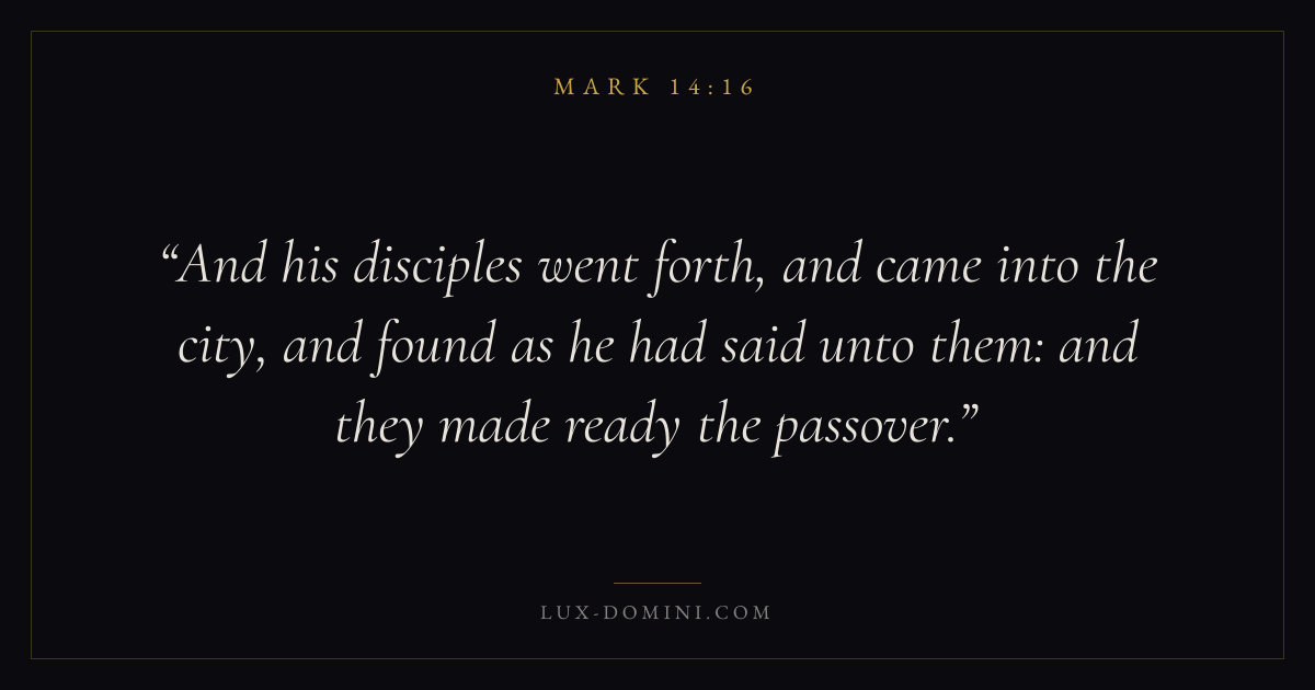 And his disciples went forth, and came into the city, and found as he had said unto them: and they made ready the passover.