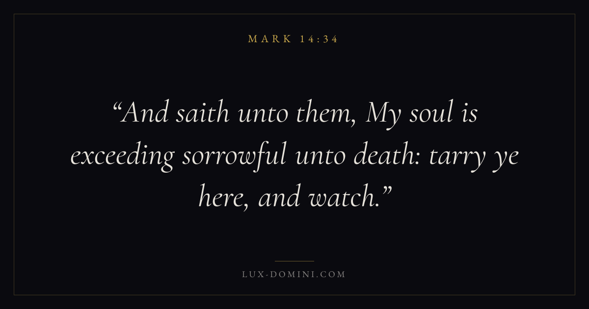 And saith unto them, My soul is exceeding sorrowful unto death: tarry ye here, and watch.