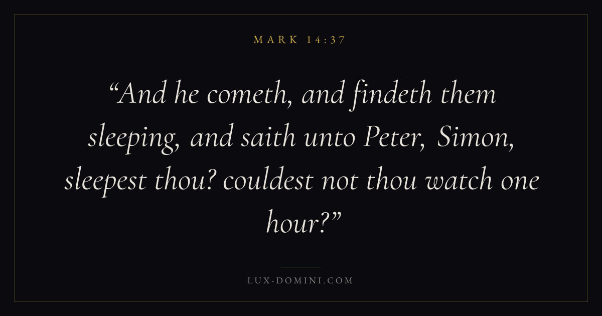 And he cometh, and findeth them sleeping, and saith unto Peter, Simon, sleepest thou? couldest not thou watch one hour?