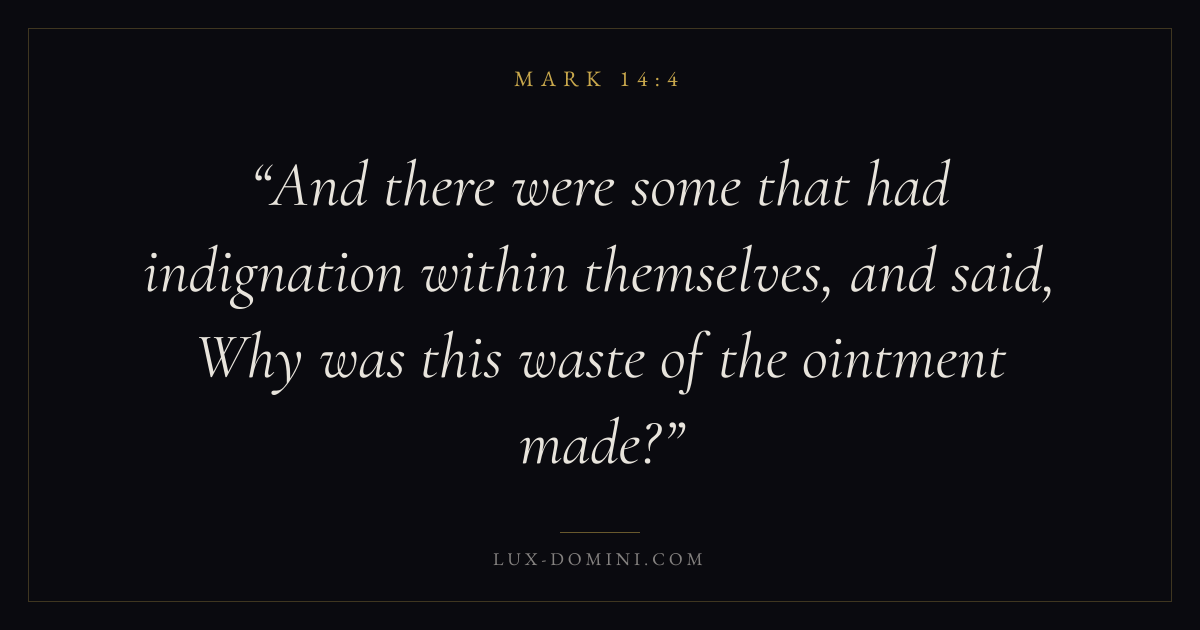 And there were some that had indignation within themselves, and said, Why was this waste of the ointment made?