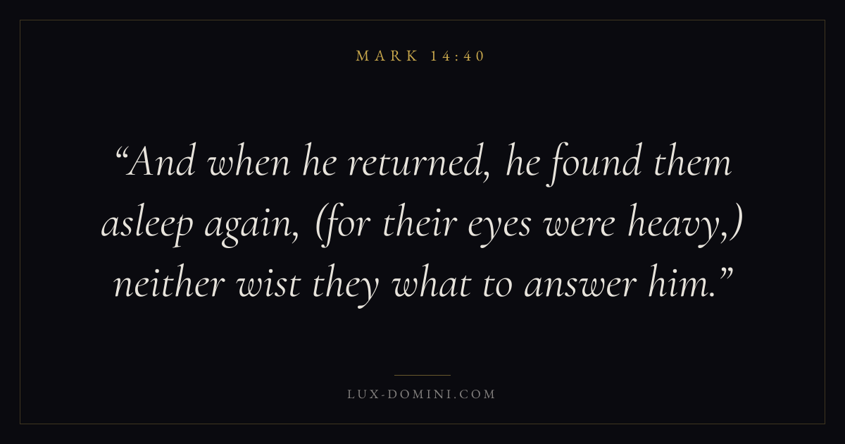 And when he returned, he found them asleep again, (for their eyes were heavy,) neither wist they what to answer him.