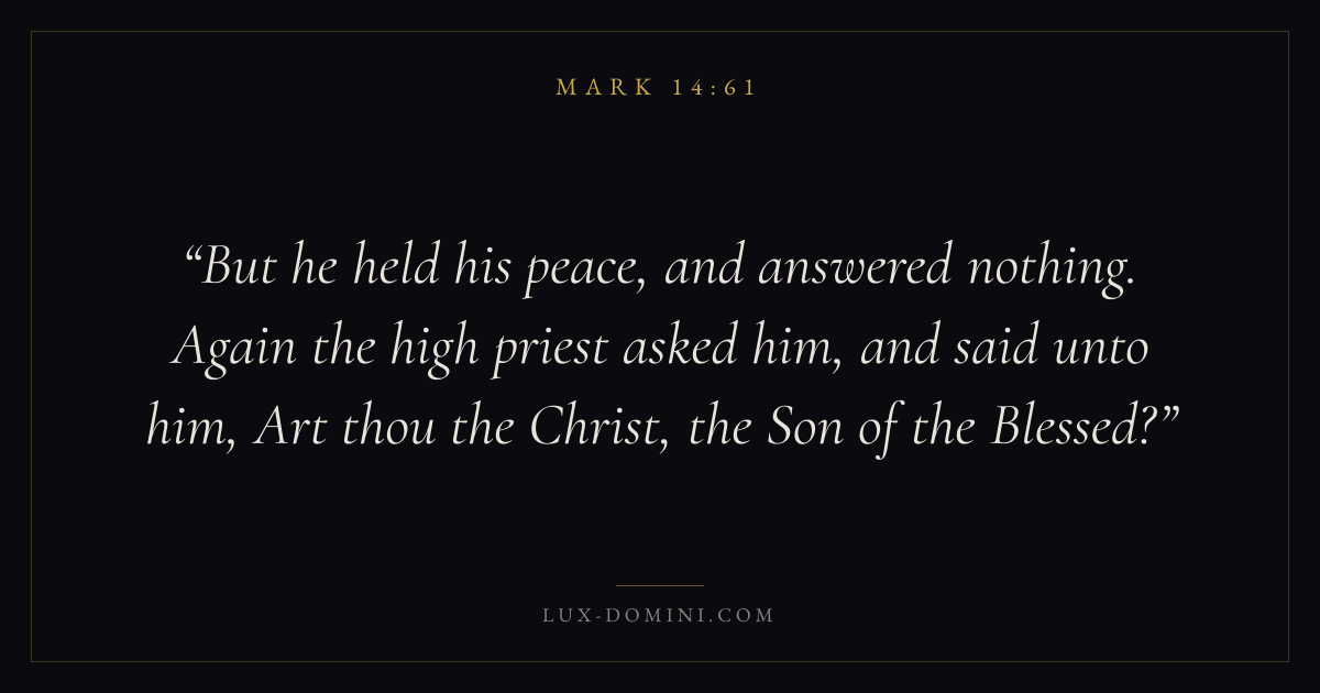 But he held his peace, and answered nothing. Again the high priest asked him, and said unto him, Art thou the Christ, the Son of the Blessed?