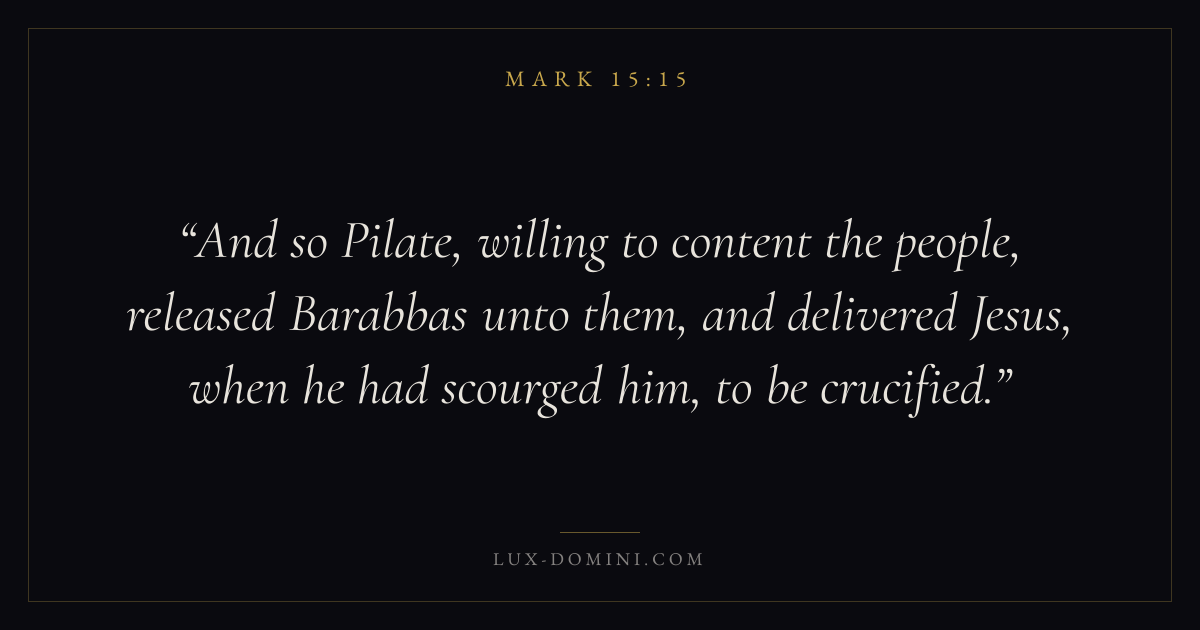 And so Pilate, willing to content the people, released Barabbas unto them, and delivered Jesus, when he had scourged him, to be crucified.