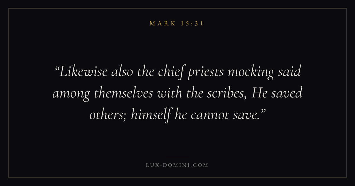 Likewise also the chief priests mocking said among themselves with the scribes, He saved others; himself he cannot save.