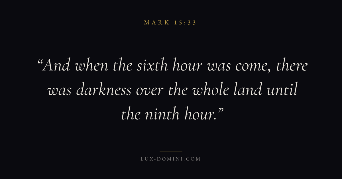 And when the sixth hour was come, there was darkness over the whole land until the ninth hour.