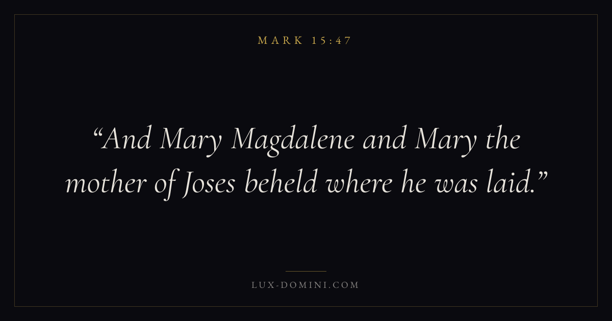 And Mary Magdalene and Mary the mother of Joses beheld where he was laid.